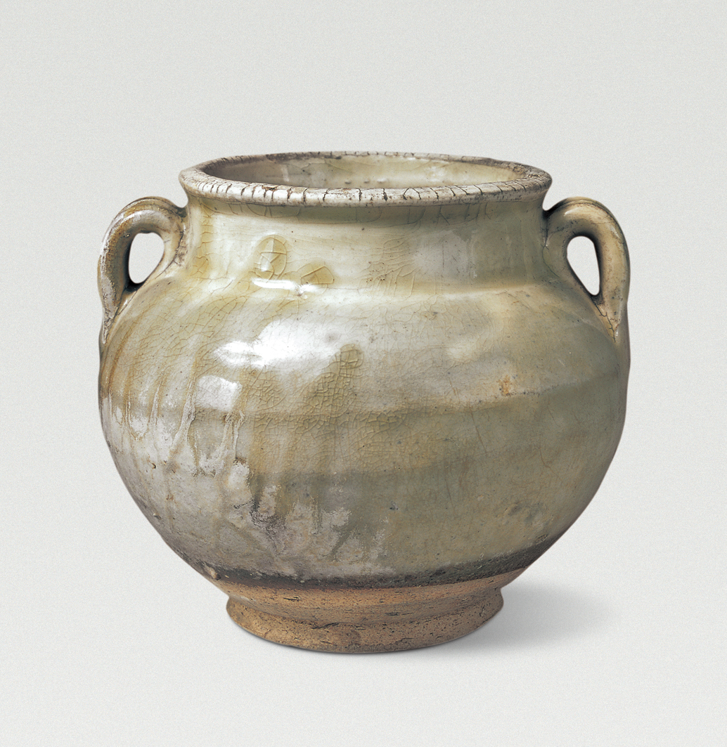 青釉双系罐