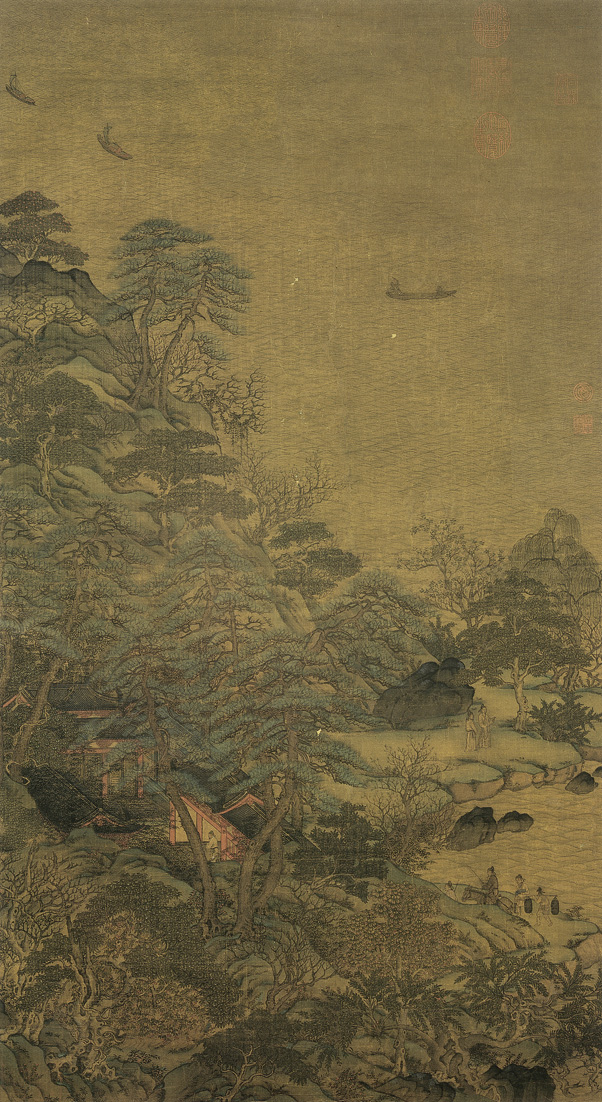 李思训(公元653—718) 唐代画家。字建,一作建景。成纪(今甘肃天水)人。唐宗室。高宗时任扬州江都令。玄宗开元初,官右武卫大将军。擅画山水树石,设色青绿为质,金碧为纹,成一家之法。其画风为后代画金碧青绿山水者所取法,有相当大的影响。其子李昭道亦擅山水,世称父子二人为“大、小李将军”。