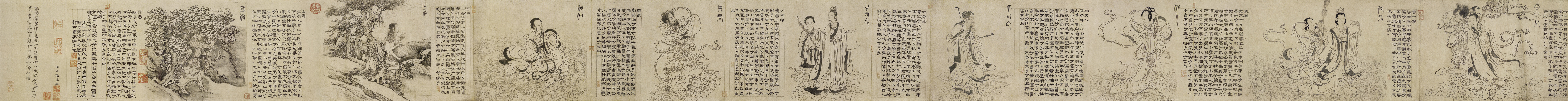 张渥 (?—约1356)元代画家。字叔厚,号贞期生、江海客。祖籍淮南,后为杭(今浙江杭州)人。博学多艺,累试不中,遂致力于诗画,工画人物,其描法,继承了李公麟白描画法之长,亦有人说他学南宋梁楷之法,笔法细致,形象生动。明清以来他的线描技法,更被奉为“人物十八描”中“铁线描”的典范。