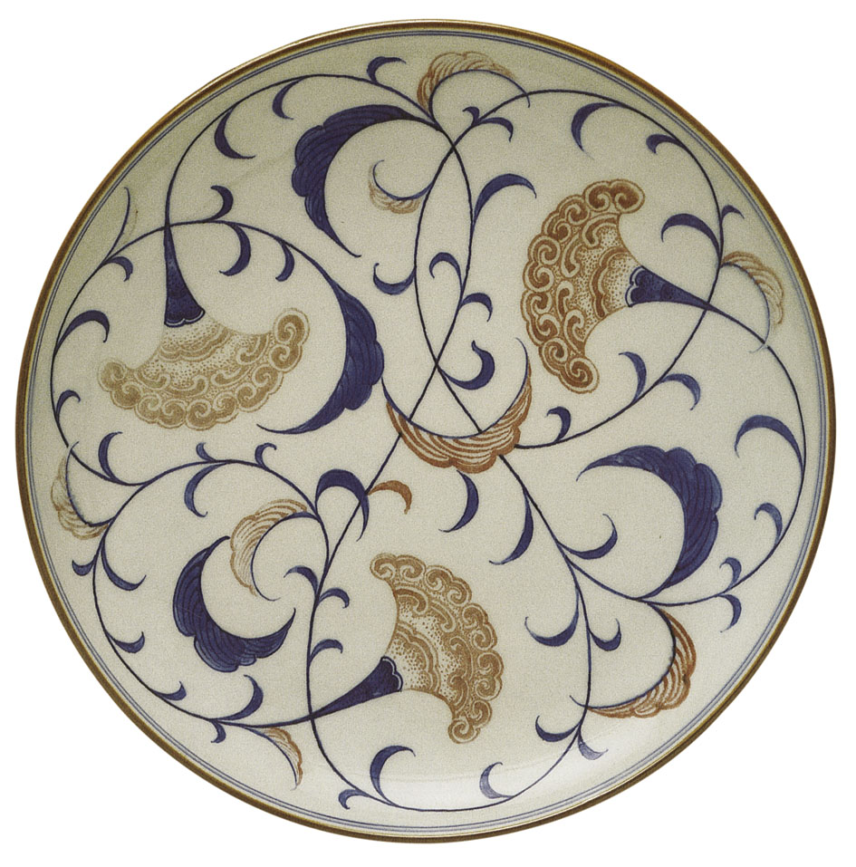盘面以青花勾枝叶纹,釉红绘鸡冠花纹