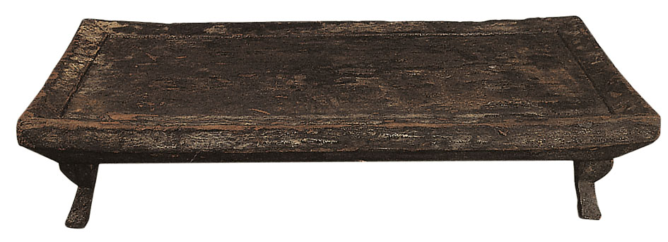 • 木胎。案底四周有沿,与四兽足榫接而成。案面周缘为朱漆绘卷云纹