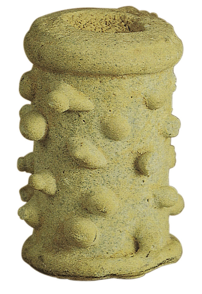 • 玻璃管呈淡绿色,不透明,管外壁有乳钉状凸起,装饰比较独特