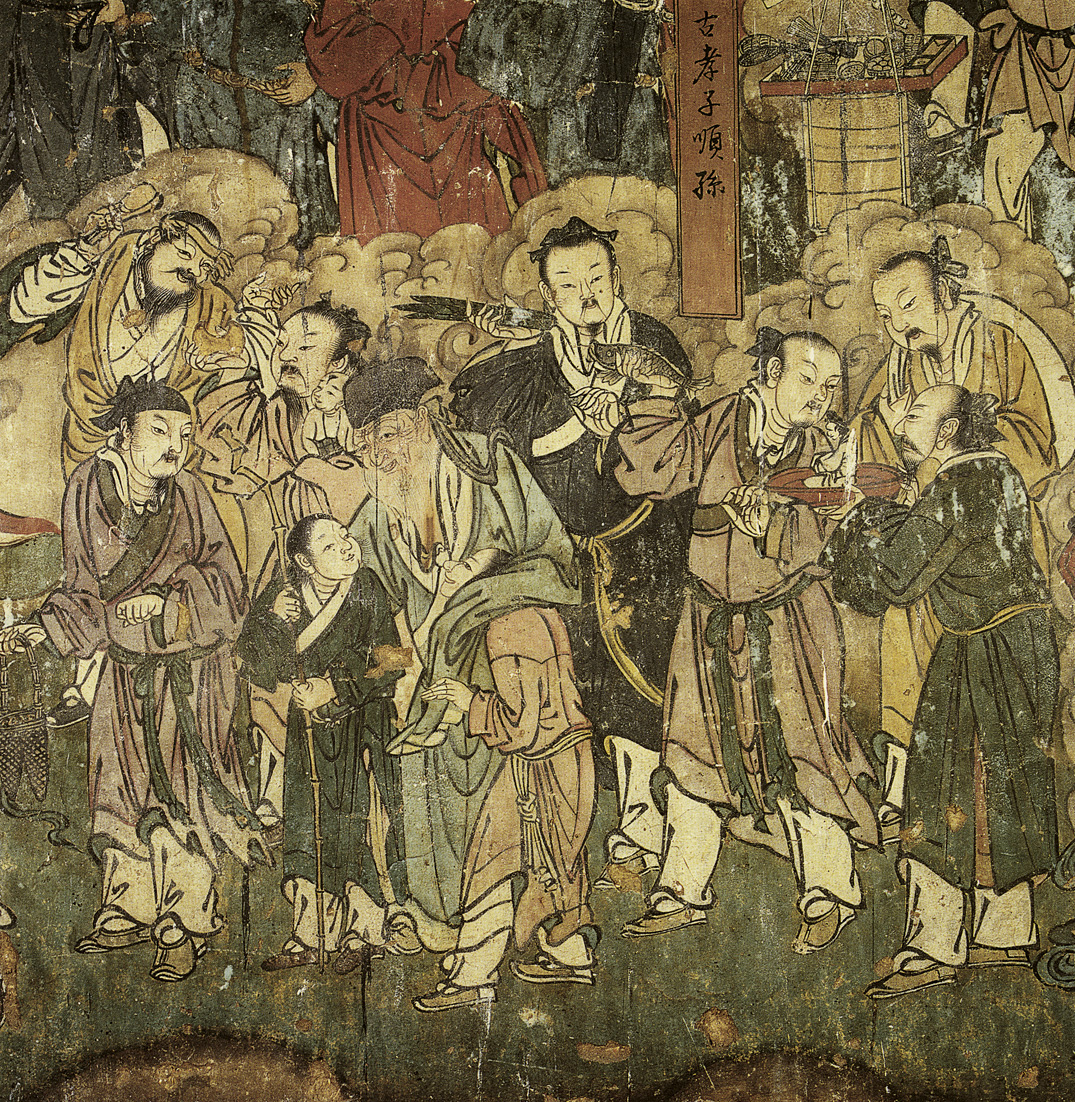 这幅绘画用流畅挺劲的线条进行勾勒和物象造型,线条极为概括洗练,刚健古拙,沉凝有力,造型生动,具有相当的艺术表现力。全幅线条虽然颇为简括,但变化非常丰富,疏密对比、粗细对比恰当、自然。如凤、龙用线对比、人物用线对比,都很有特色。凤鸟之用线,明显比龙纹丰富、变化得多,线条主要突出风的动感造型和优美姿势的表达,在疏密对比上也加以留意,详略得当。如翅膀用线,细密完整,不惜精心刻造,具有装饰性的成分:凤鸟的爪、尾羽轮廓线则粗犷有力,大胆概括,见其尾羽的劲挺和脚爪角质层的瘦硬和坚实。龙之用线,则较为纤细、简略一些,突出其较为安静的静势,与凤鸟的剧烈升腾所形成的飞动之势对比,更显凤鸟的勃勃生机。