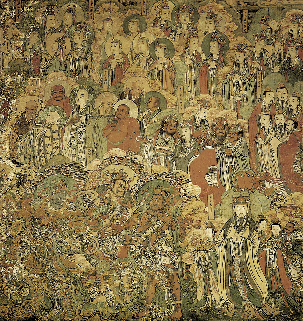 • 壁画题记十九组,绘人物七十身。内容以道释人物为主,包括玉皇大帝、帝释天、明王和十六罗汉等