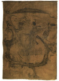 这幅绘画用流畅挺劲的线条进行勾勒和物象造型,线条极为概括洗练,刚健古拙,沉凝有力,造型生动,具有相当的艺术表现力。全幅线条虽然颇为简括,但变化非常丰富,疏密对比、粗细对比恰当、自然。如凤、龙用线对比、人物用线对比,都很有特色。凤鸟之用线,明显比龙纹丰富、变化得多,线条主要突出风的动感造型和优美姿势的表达,在疏密对比上也加以留意,详略得当。如翅膀用线,细密完整,不惜精心刻造,具有装饰性的成分:凤鸟的爪、尾羽轮廓线则粗犷有力,大胆概括,见其尾羽的劲挺和脚爪角质层的瘦硬和坚实。龙之用线,则较为纤细、简略一些,突出其较为安静的静势,与凤鸟的剧烈升腾所形成的飞动之势对比,更显凤鸟的勃勃生机。