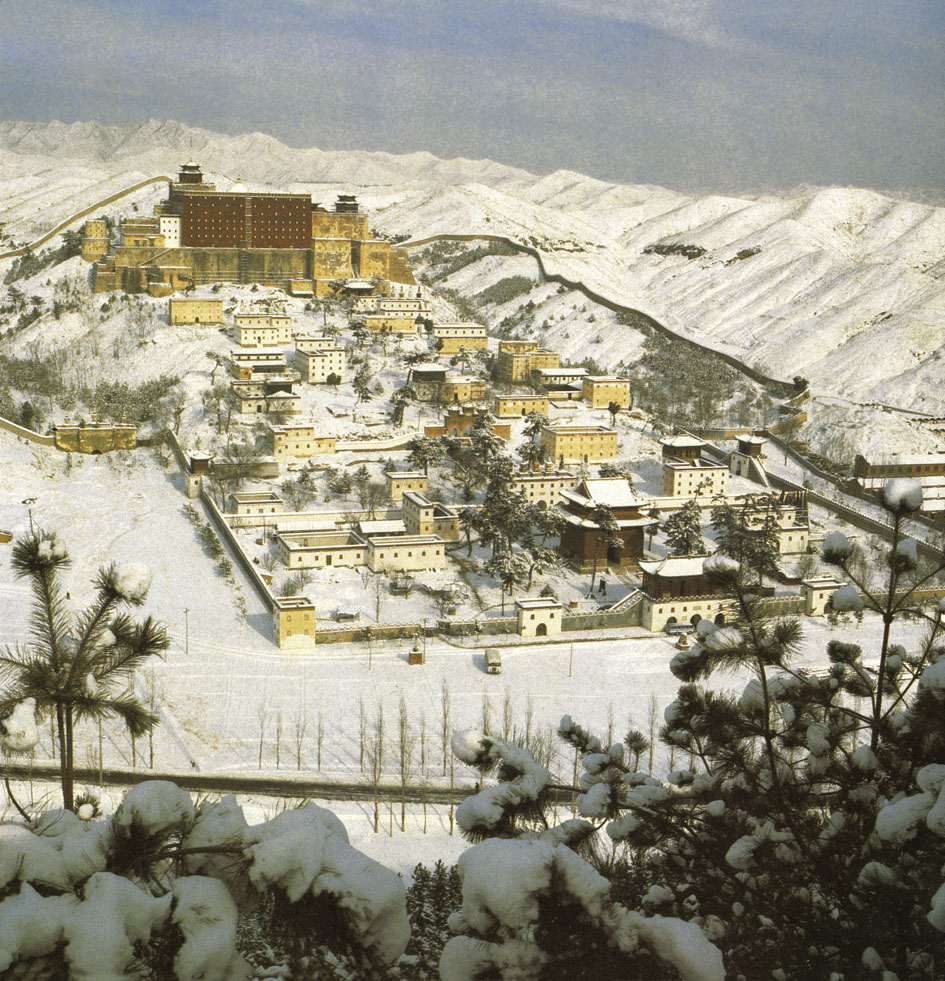 • 建于清乾隆三十一年,形制模仿布达拉宫。寺庙前部以碑亭为中心、并有城堡环绕;中部沿山路两侧布置二十余座藏式白台建筑;后部主体建筑为大红台。大红台中间为万法归一殿及其群楼,东部为落伽胜境殿及其群楼,西部为千佛阁