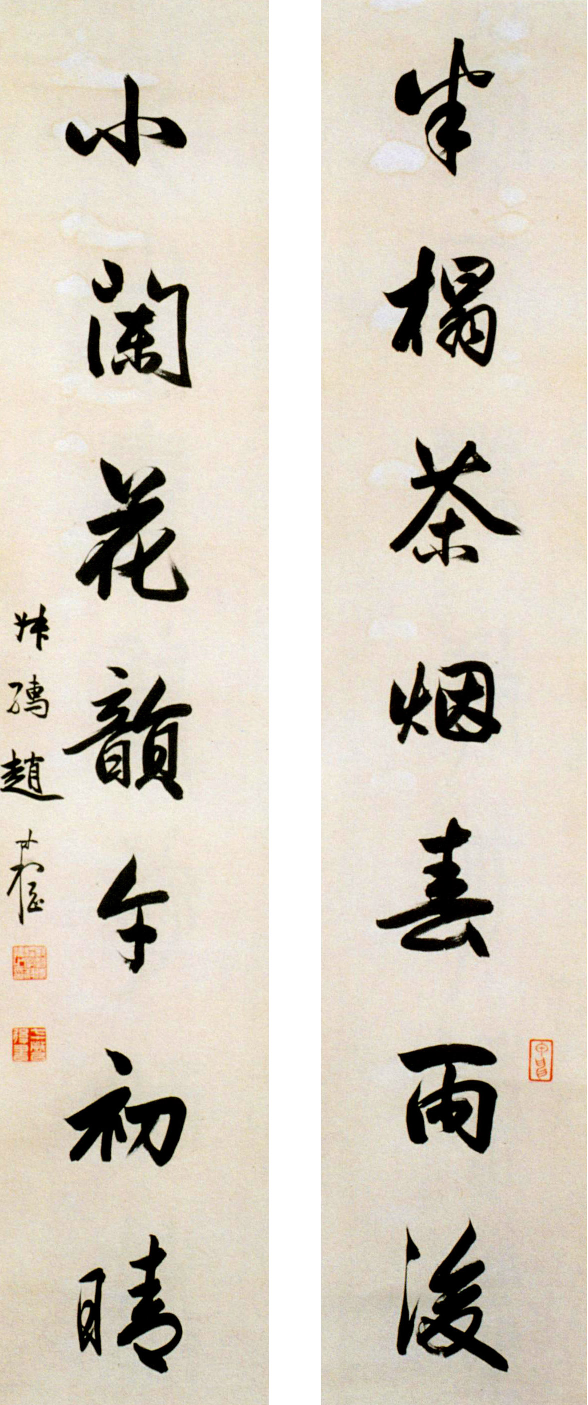 行书联·半榻茶烟春雨后,小阑花韵午初晴