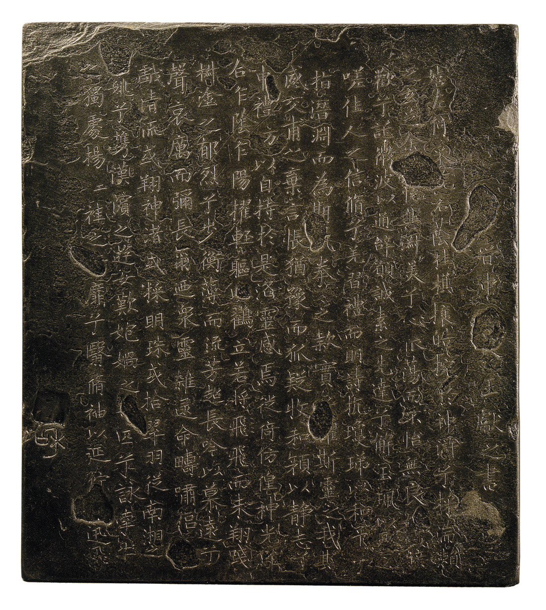 • 献之小楷书曹植的《洛神赋》,自宋代以来,仅残存中间十三行,所以一般人都简称为《十三行》,真迹已不复存在。《洛神赋十三行》墨迹在宋元时流传有两本:一为晋麻笺,在元代初期归书家赵孟俯所得,定为王献之真迹。一为唐硬黄纸,后有柳公权等人题跋,赵孟俯定为唐人摹本,后人疑即柳公权所临。这两本在宋代都曾刻石,明清两代辗转翻刻,但基本上还是出于这两个底本。现传无柳跋本的石刻,都推“碧玉版本”为最精。这是明万历时杭州西湖葛岭地下发现的一方石刻,石色深暗,被人美称为碧玉,“碧玉版本”初拓本,存字大都完好,其它石花处亦自然清晰。因其地为贾似道半闲堂旧址,所以后人认为是贾氏所刻,后归归陆梦鹤、翁嵩年。清康熙间入内府,八国联军攻占北京后,此石流入民间。解放后由国家收购,藏首都博物馆。世传还有与此相同的一本,号称“白玉版本”,笔划比“碧玉版本”略枯瘦,石花剥落处有刀刻的痕迹,可知是一种翻刻本。王献之所书《洛神赋》(十三行)体势秀逸,虚和简静、灵秀流美,与文章内涵极为和谐,这件佳作被后人誉为“小楷之极则”,清杨宾《铁函斋书号》认为“字之秀劲园润,行世小楷无出其右”。从《洛神赋》(十三行)中可看出,王献之的楷书笔法不再带有隶意,字形也由横势变为纵势,已是完全成熟的楷书之作。