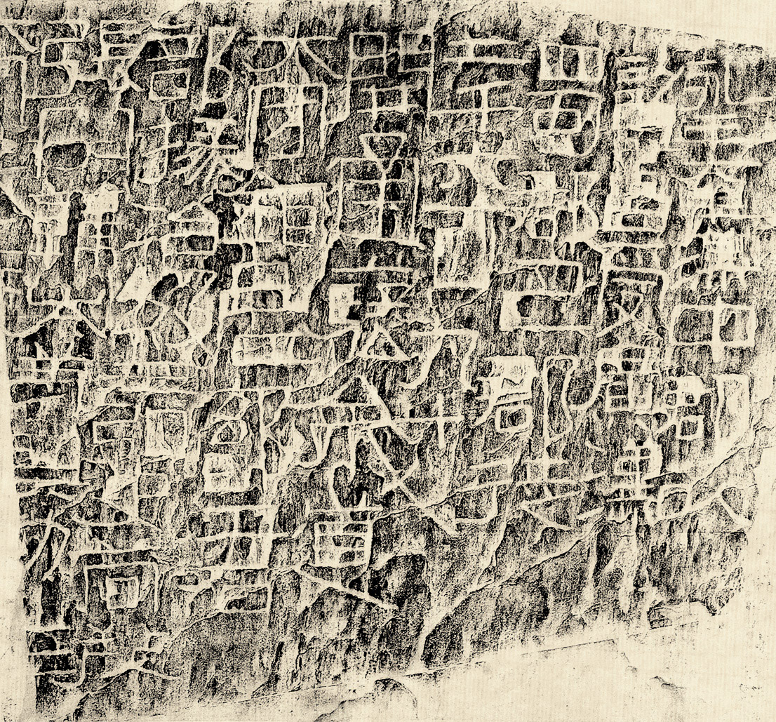 • 《汉鄐君开通褒斜道刻石》又称《大开通》,或《开道碑》。东汉永平六年(63年)刻,隶书十六行,行五字至十一字不等。此刻在晏袤以前的欧、赵、洪三家着录中均未及之,至南宋娄机《汉隶字源》始见着录。至南宋光宗绍熙五年(1194)三月,始为南郑令临淄晏袤所发现,刻释文于其旁,后被苔藓所掩,六百余年不为人知,不见着录。到清乾隆间,陕西巡抚、金石家毕沅撰《关中金石志》,复搜访而得之,遂有拓本传世。杨守敬《平碑记》:“按其字体,长短广狭,参差不齐,天然古秀若石纹然,百代而下,无从摹拟,此之谓神品”。清刘熙载《艺概》书誉其“隶之古也”。宋晏袤评其“字法奇劲,古意有余。与光武中元二年《蜀郡太守何君阁道碑》体势相若。建武、水平去西汉未远,故字画简古严正,观之使人起敬不暇。”(《题记》)清方纲谓:“至其字画古劲,因石之势纵横长斜,纯以天机行之,此实未加波法之汉隶也。”(《两汉金石记》)方朔谓:“玩其体势,意在以篆为隶,亦由篆变隶之日,浑朴苍劲。”(《枕经金石跋》)钱大昕谓:“文字古朴,东京分隶,传于今者,以此为最先焉。(《潜研堂金石文字跋尾》)此刻石用笔以圆笔为主,参以篆意,与同处褒城稍后的《石门颂》、《杨淮表记》刻石用笔相似,但取势不同,此刻石内松外紧,气势饱满,以斜取势,结体奇崛。《石门颂》则结字内紧外松,气势开张,草意味浓。字与《石门颂》、《西狭颂》、《郙阁颂》并为汉著名摩崖,而且年代最早。