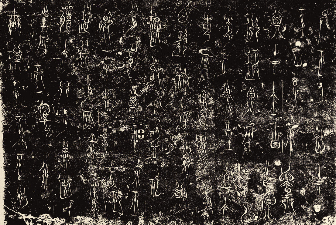 • 河南淅川下寺出土的王子午鼎是春秋中期器物。作器者为楚令尹王子午(字子庚)。此鼎纹饰极其华美,多用浮雕、立雕技法,是当时楚器的新风尚。器铭14行,共84字,盖上另有铭文4字。这体现了春秋中期,南方青铜器文字开始装饰化。青铜器上的铭文或称金文、钟鼎文。与后来的籀文、小篆属于同一文字体系。为篆书之源。青铜器铭文是在铸造器物过程刻写、铸造出来的,具有一种特有的浑厚、凝重的审美效果。从书法艺术角度看,这一时期的青铜器铭文表现出两种相反的艺术倾向:一方面是比以往更加注重用笔的轻重、起落变化和结体的避就,衬托呼应,表现了书法艺术的进一步成熟;而加一方面则是过分地追求装饰性,出现了鸟虫篆、蝌蚪书。鸟虫篆流行干楚、吴、起等地区,如(吴)王子于戈铭、禁王璋戈铭等,笔划缪屈增繁,局部作鸟的形态。楚王肯盘笔划细长,起住笔和转折处增肥如滴水之形,后世称之为“蚊脚书”。王子午鼎铭就是这类铭文中典型的例子。