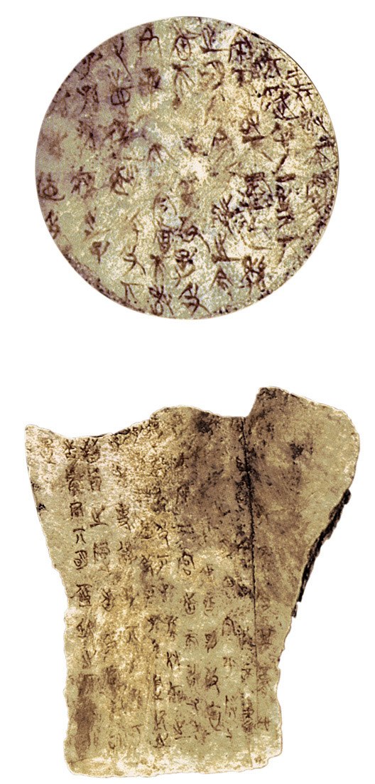 • 1965年山西侯马晋国遗址出土了大量盟誓辞文玉石片,称为“侯马盟书”,又称“载书”,共有5000余件,每件玉片大小不一,磨琢精致,用毛笔书写,字迹与春秋晚期的铜器铭文相似,大部分是朱红色,也有小部分是黑色的,比较清晰。因为玉片大小不一,字数也有多有少,多的达200左右,少的只有十余字。侯马盟书是春秋晚期晋国赵鞅与卿大夫订立的文字条约,要求参加盟誓的人都效忠盟主,一致诛讨已被驱逐在外的敌对势力,不再扩充奴隶、土地、财产,不与敌人来往。盟书的发现,对研究中国古代盟誓制度和文字,研究晋国历史,以及中国由奴隶社会向封建社会过渡的情况有重大意义。盟书笔锋清丽,其书法犀利简率,提按有致,舒展而有韵律。