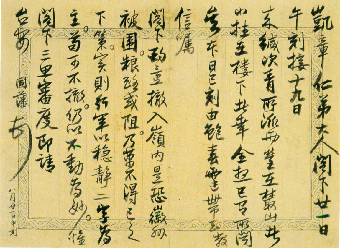 致凯章札·凯章仁弟大人阁下二十一日