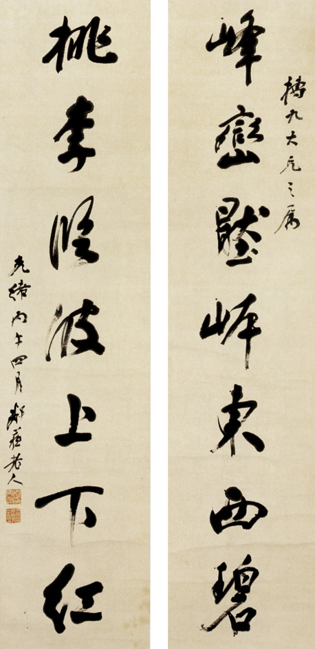 七言联·峰峦压岸东西碧 桃李临波上下红