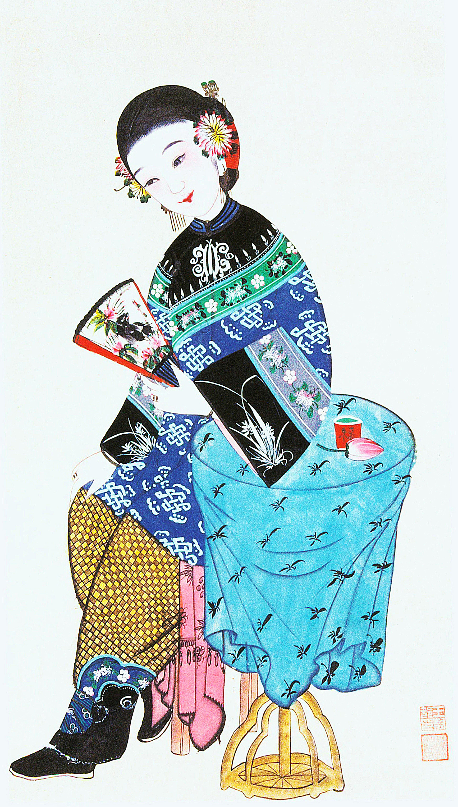 这幅绘画用流畅挺劲的线条进行勾勒和物象造型,线条极为概括洗练,刚健古拙,沉凝有力,造型生动,具有相当的艺术表现力。全幅线条虽然颇为简括,但变化非常丰富,疏密对比、粗细对比恰当、自然。如凤、龙用线对比、人物用线对比,都很有特色。凤鸟之用线,明显比龙纹丰富、变化得多,线条主要突出风的动感造型和优美姿势的表达,在疏密对比上也加以留意,详略得当。如翅膀用线,细密完整,不惜精心刻造,具有装饰性的成分:凤鸟的爪、尾羽轮廓线则粗犷有力,大胆概括,见其尾羽的劲挺和脚爪角质层的瘦硬和坚实。龙之用线,则较为纤细、简略一些,突出其较为安静的静势,与凤鸟的剧烈升腾所形成的飞动之势对比,更显凤鸟的勃勃生机。