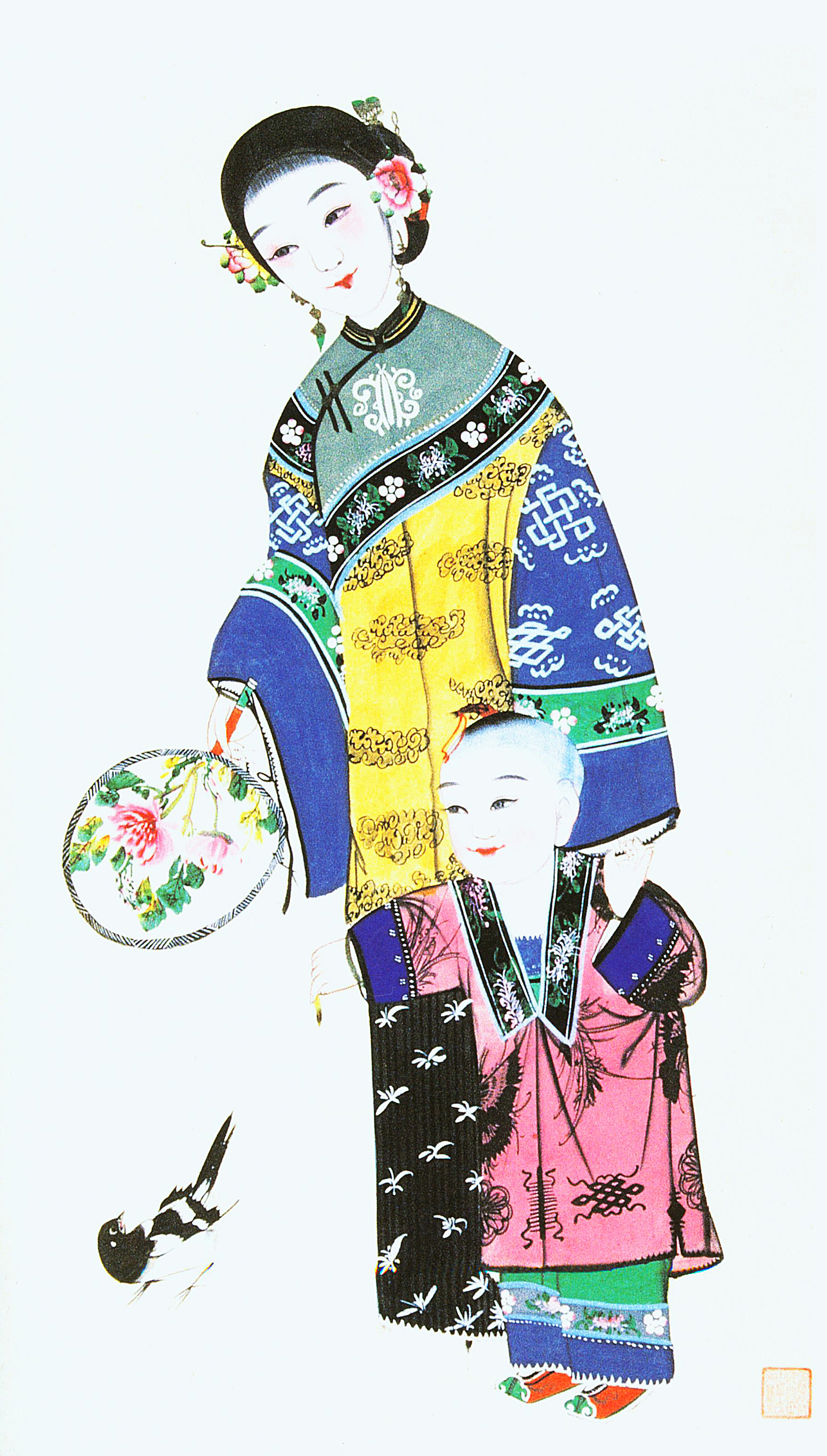这幅绘画用流畅挺劲的线条进行勾勒和物象造型,线条极为概括洗练,刚健古拙,沉凝有力,造型生动,具有相当的艺术表现力。全幅线条虽然颇为简括,但变化非常丰富,疏密对比、粗细对比恰当、自然。如凤、龙用线对比、人物用线对比,都很有特色。凤鸟之用线,明显比龙纹丰富、变化得多,线条主要突出风的动感造型和优美姿势的表达,在疏密对比上也加以留意,详略得当。如翅膀用线,细密完整,不惜精心刻造,具有装饰性的成分:凤鸟的爪、尾羽轮廓线则粗犷有力,大胆概括,见其尾羽的劲挺和脚爪角质层的瘦硬和坚实。龙之用线,则较为纤细、简略一些,突出其较为安静的静势,与凤鸟的剧烈升腾所形成的飞动之势对比,更显凤鸟的勃勃生机。