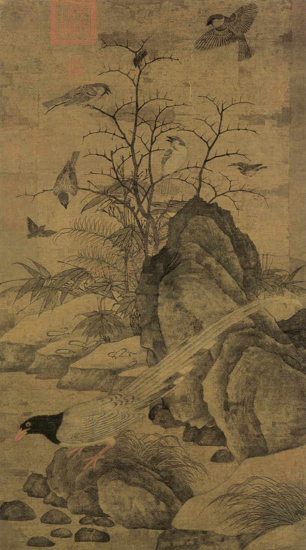 黄居寀(公元933—?年)五代宋初画家。字伯鸾。成都(今属四川)人。黄筌第三子。为翰林院待诏。传家学,工画花竹禽鸟。其画风以勾勒劲挺和填彩浓厚见长。黄氏父子画风富丽,适合宫廷需要,加之黄氏在画院居于主持地位,一时成为画坛的主导。