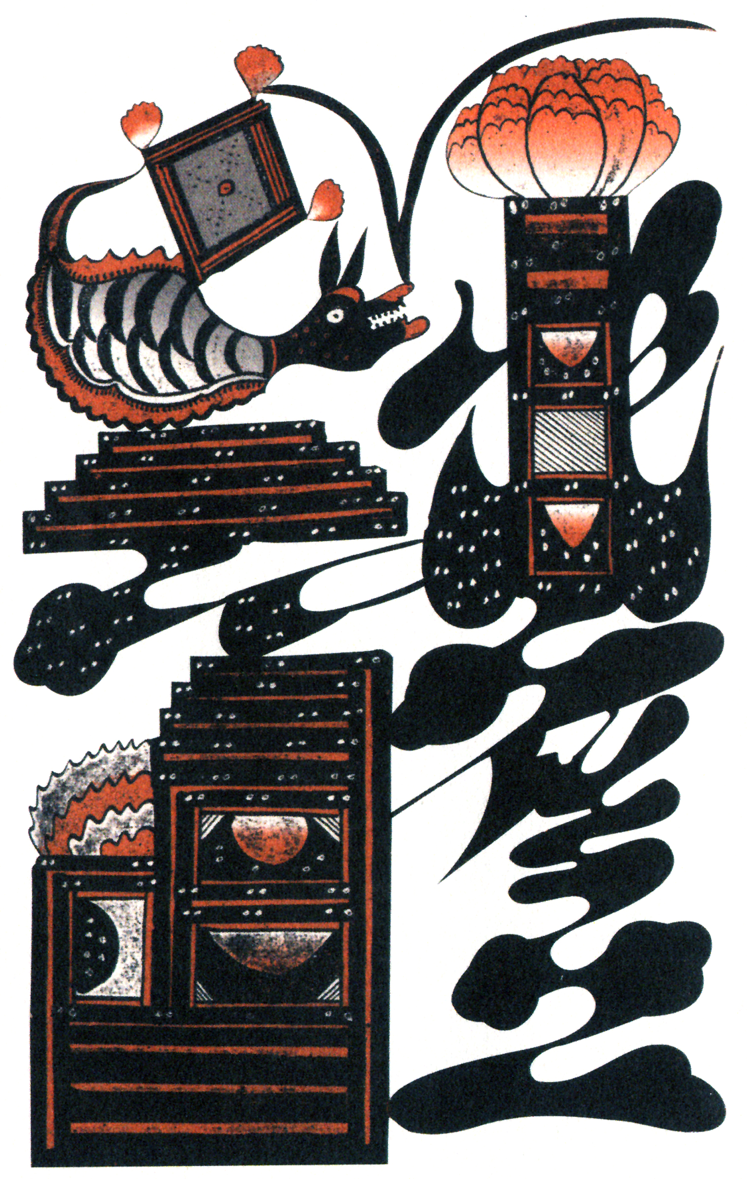 这幅绘画用流畅挺劲的线条进行勾勒和物象造型,线条极为概括洗练,刚健古拙,沉凝有力,造型生动,具有相当的艺术表现力。全幅线条虽然颇为简括,但变化非常丰富,疏密对比、粗细对比恰当、自然。如凤、龙用线对比、人物用线对比,都很有特色。凤鸟之用线,明显比龙纹丰富、变化得多,线条主要突出风的动感造型和优美姿势的表达,在疏密对比上也加以留意,详略得当。如翅膀用线,细密完整,不惜精心刻造,具有装饰性的成分:凤鸟的爪、尾羽轮廓线则粗犷有力,大胆概括,见其尾羽的劲挺和脚爪角质层的瘦硬和坚实。龙之用线,则较为纤细、简略一些,突出其较为安静的静势,与凤鸟的剧烈升腾所形成的飞动之势对比,更显凤鸟的勃勃生机。