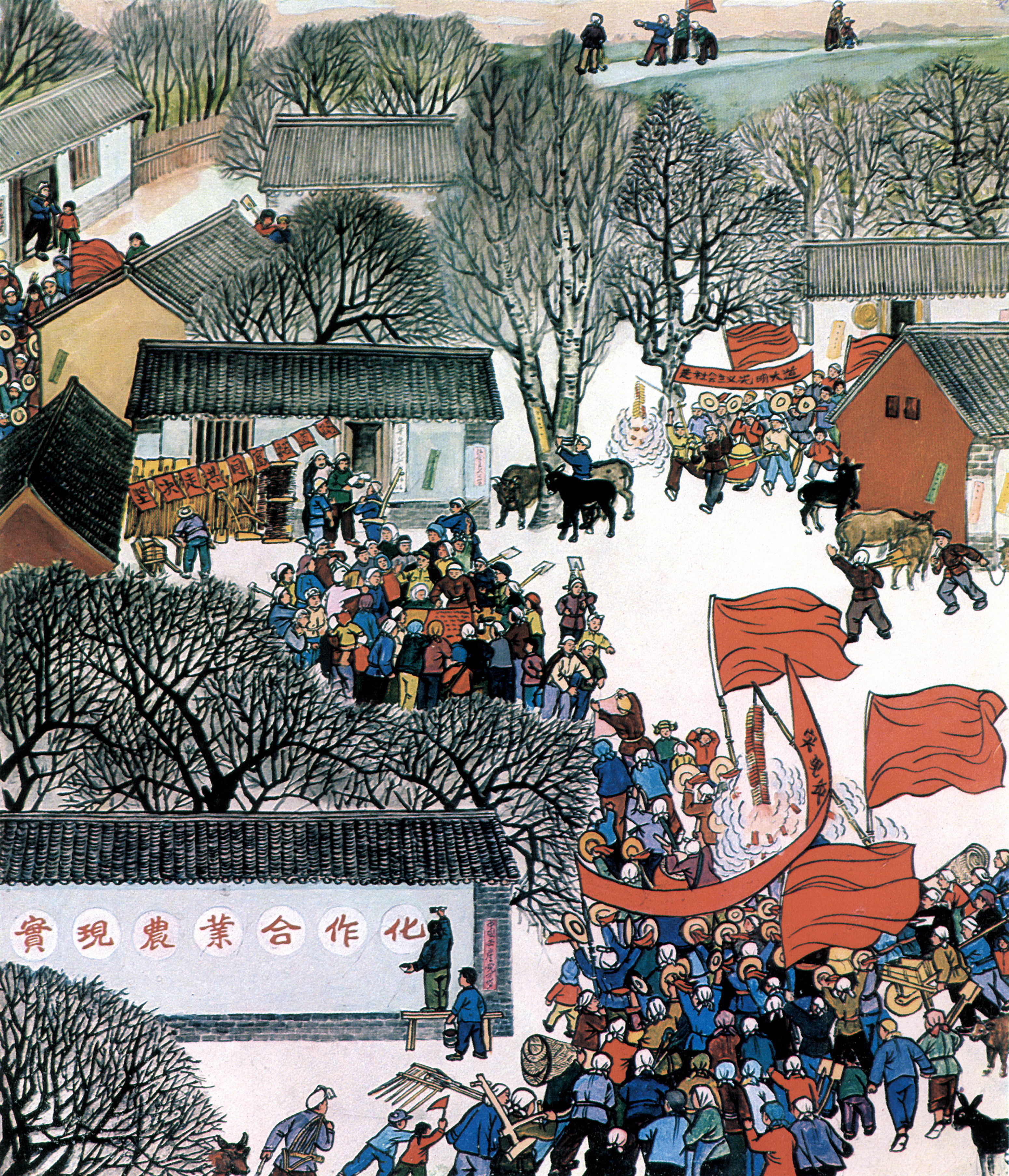 牛东公社阶级教育展览画选(之二)-一根木头难盖房,一块砖头难垒墙,组织起来力量大,金光大道多宽广。