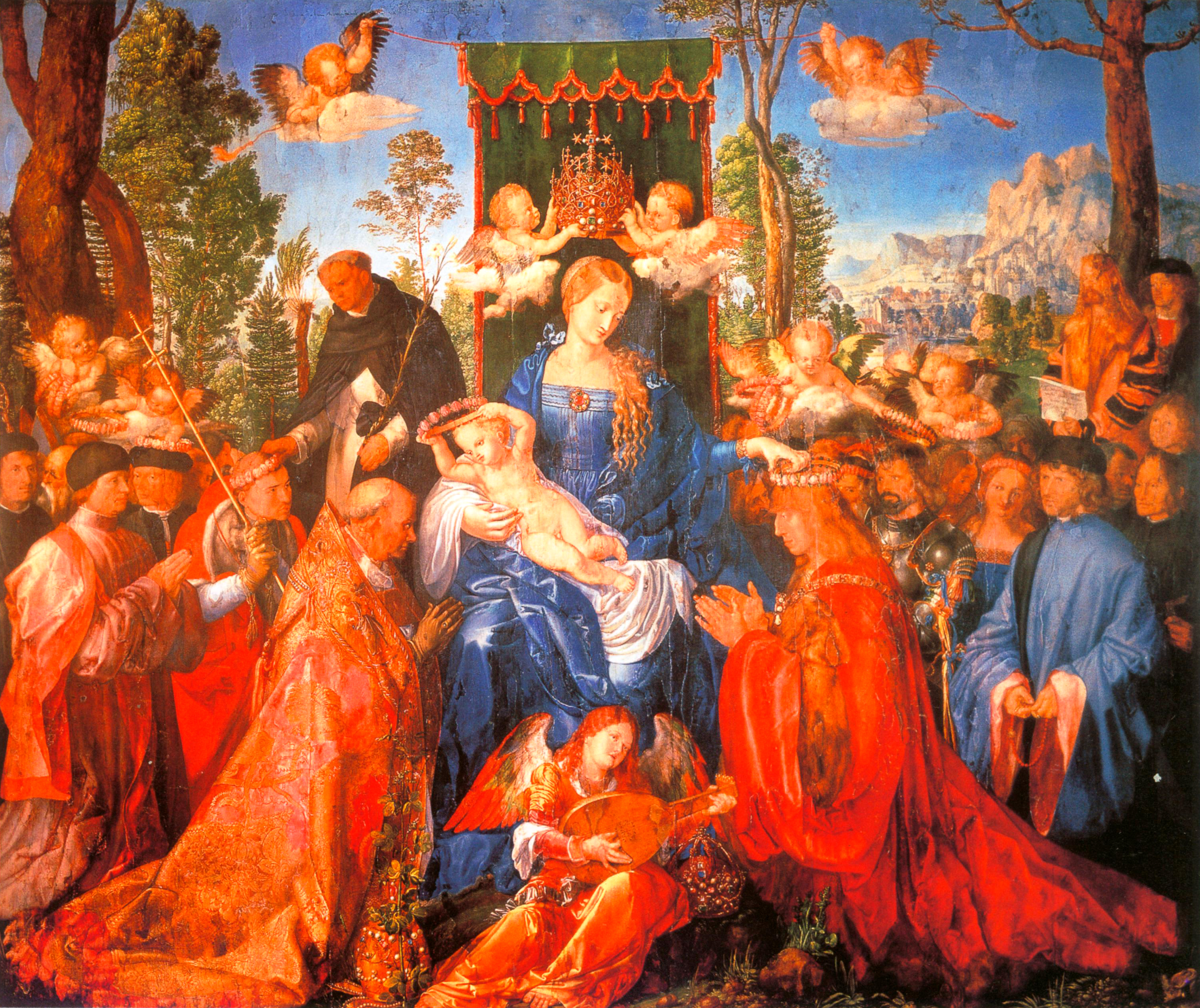 阿尔布雷特·丢勒(Albrecht Durer,1471-1528) ,德国画家、版画家及木版画设计家。少年时曾追随父亲习艺,他对绘画表现出特殊的才能,13岁时就能逼真的画自己的肖像,19岁时为父亲所画的肖像已充分显示他成熟的素描功力,可与达·芬奇遥相呼应。他走出画室沿着莱茵河游历德国主要工业城市,到过法兰克福,访问过科隆和巴赛尔。4年间的旅行学习考察对画家的世界观形成和艺术发展起了决定性作用。23岁的丢勒已是一位有影响的艺术家,在这一年里,他与故乡的一位音乐家的女儿阿格列萨·弗湟伊结了婚,此后丢勒作为首饰匠和画家开始了独立工作。