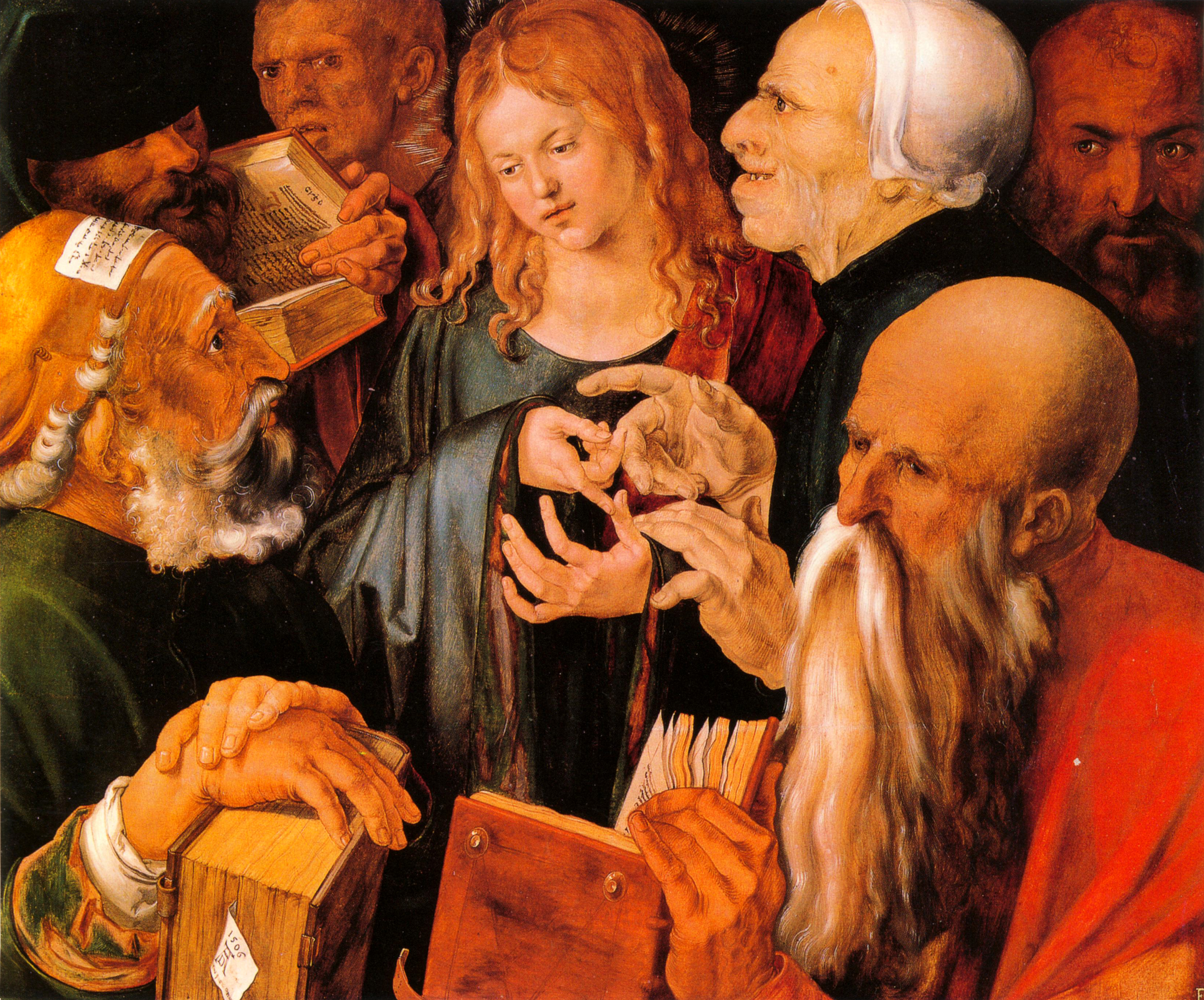 阿尔布雷特·丢勒(Albrecht Durer,1471-1528) ,德国画家、版画家及木版画设计家。少年时曾追随父亲习艺,他对绘画表现出特殊的才能,13岁时就能逼真的画自己的肖像,19岁时为父亲所画的肖像已充分显示他成熟的素描功力,可与达·芬奇遥相呼应。他走出画室沿着莱茵河游历德国主要工业城市,到过法兰克福,访问过科隆和巴赛尔。4年间的旅行学习考察对画家的世界观形成和艺术发展起了决定性作用。23岁的丢勒已是一位有影响的艺术家,在这一年里,他与故乡的一位音乐家的女儿阿格列萨·弗湟伊结了婚,此后丢勒作为首饰匠和画家开始了独立工作。