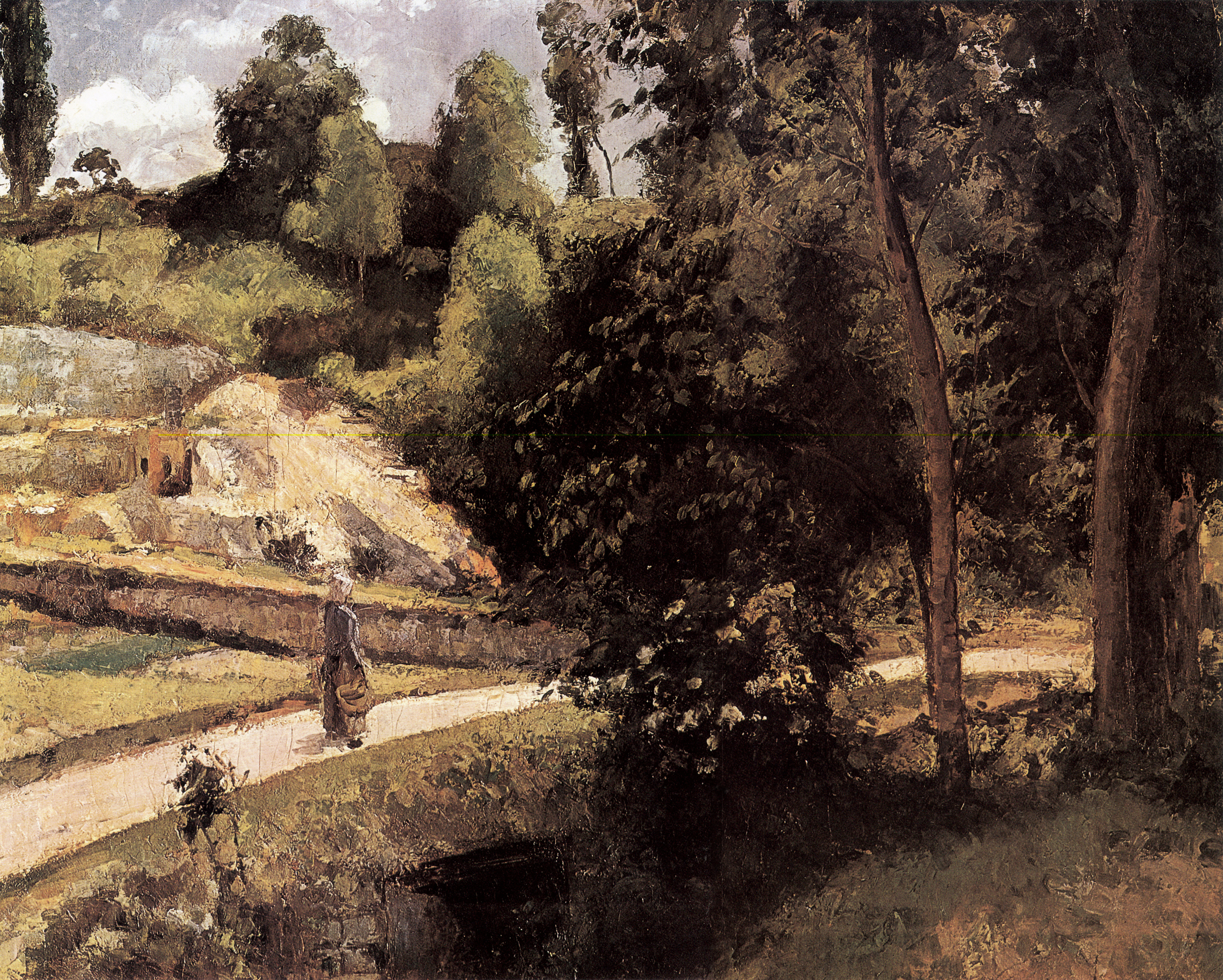 卡米耶·毕沙罗(Camille Pissarro,1830年-1903年)堪称印象派团体中的“中流砥柱”,尽管其他几位印象派大师的“社会知名度”比他大,但总体作用仍有所不同。 塞尚、高更等都称自己是毕沙罗的学生。他是唯一参加了印象派所有8次展览的画家。不管外界有多大的压力,也不管内部有多大的纷争,毕沙罗静静地坚守着,先后吸引了塞尚、高更、修拉、西涅克等参加联展。 毕沙罗是始终如一的印象派画家,他对印象派的重要意义甚至超过莫奈,他品德高尚赢得所有人的钦佩,人们尊称他为印象派的摩西(上帝的传喻者,以色列人的领袖)。 他1873年画的《蓬图瓦兹:埃尔米塔日的坡地》,仿佛能让人嗅到乡村清新气息。那专注于农时的老农,让人觉得有点像毕沙罗本人。60岁后的他,就天天在窗边作画,直到病逝。