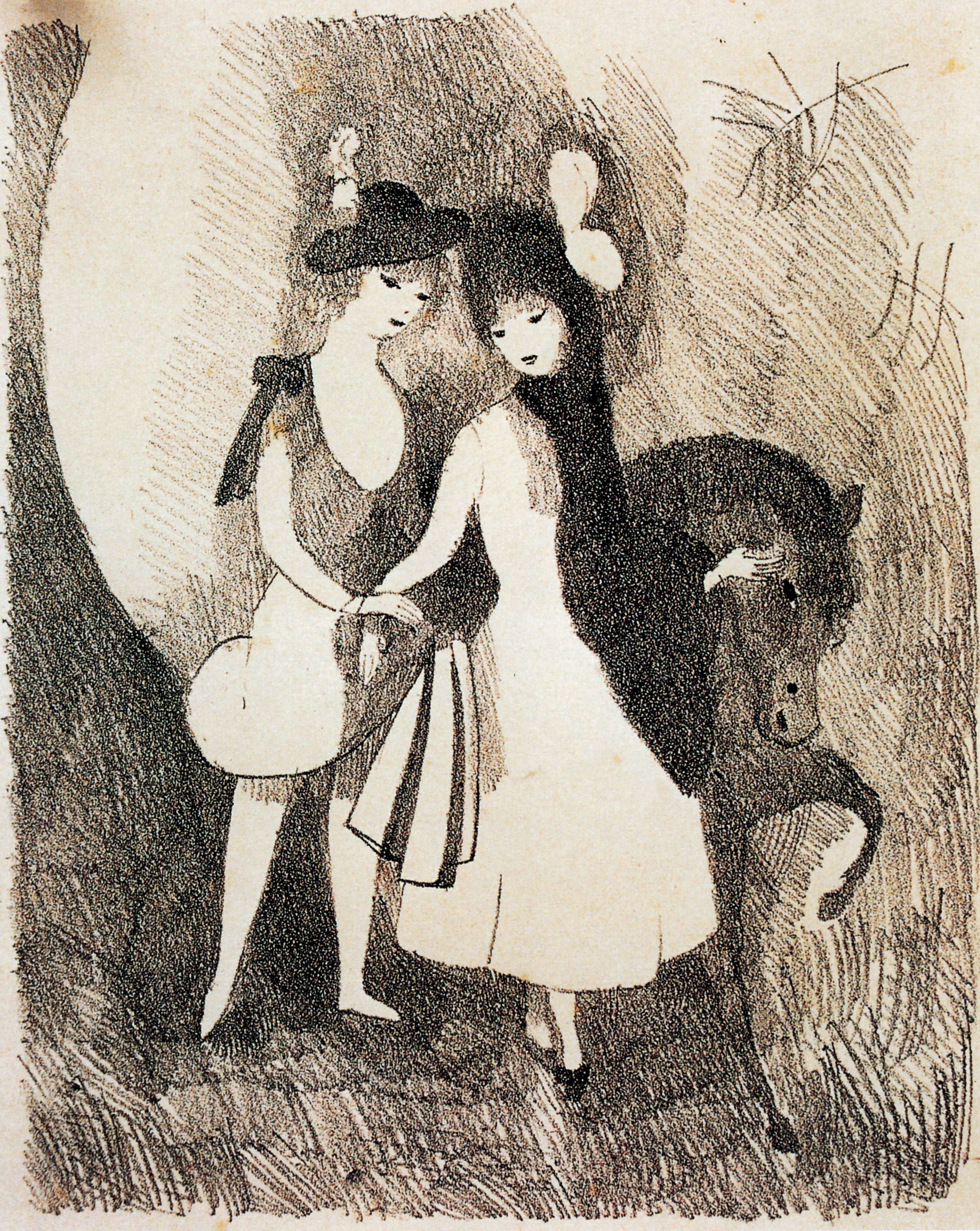 玛丽·罗兰珊(Marie Laurencin,1883-1956年)出生于巴黎。她笔下的巴黎女性,都有风雅的情韵。她一生试过用立体派的线条来表现巴黎的女性。最终,她选择了淡雅而稍透忧思饱和又透明的色彩,来表现二十世纪上叶巴黎女性柔婉雅的体态和那种不言而喻的风雅。