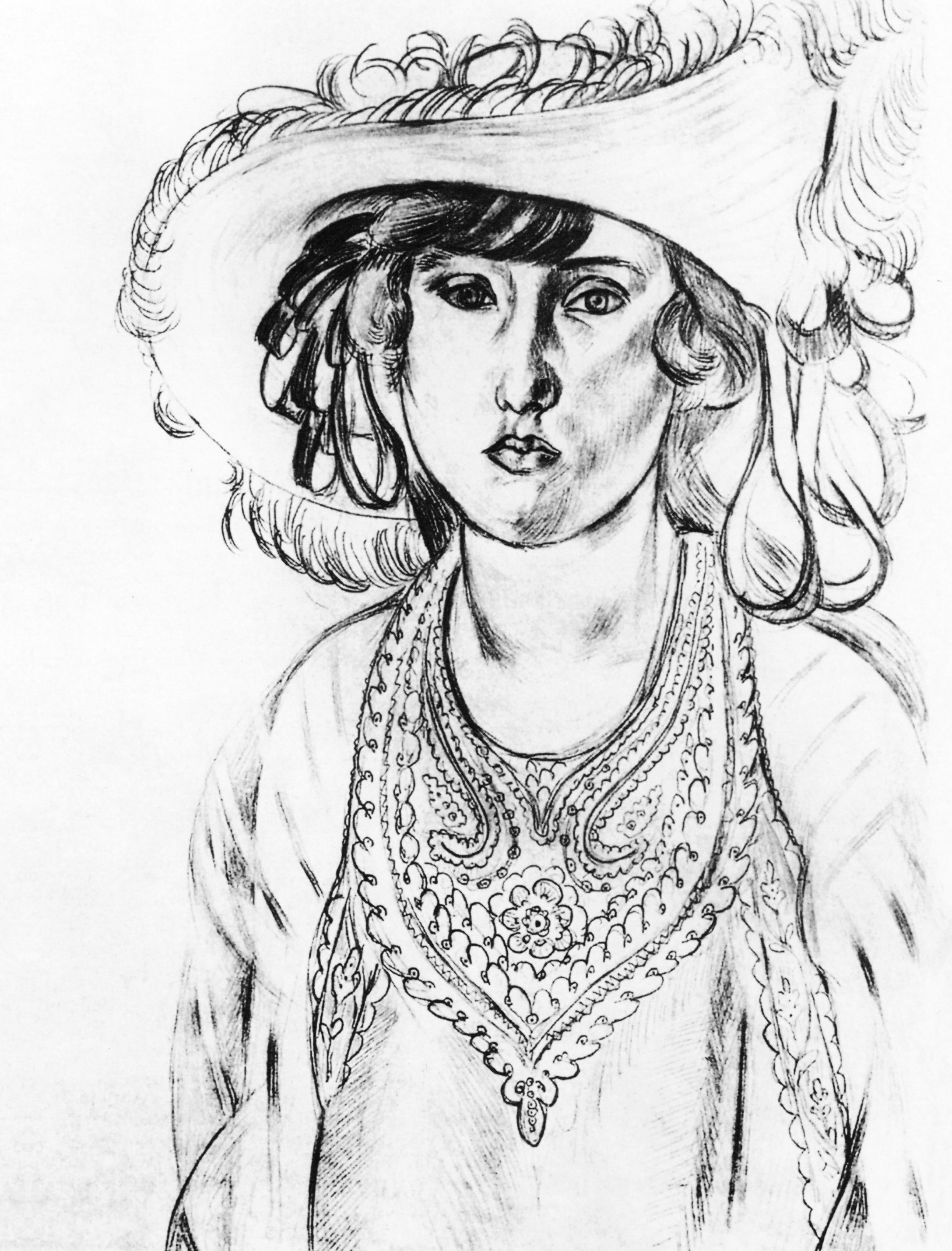 戴羽毛帽子的女人