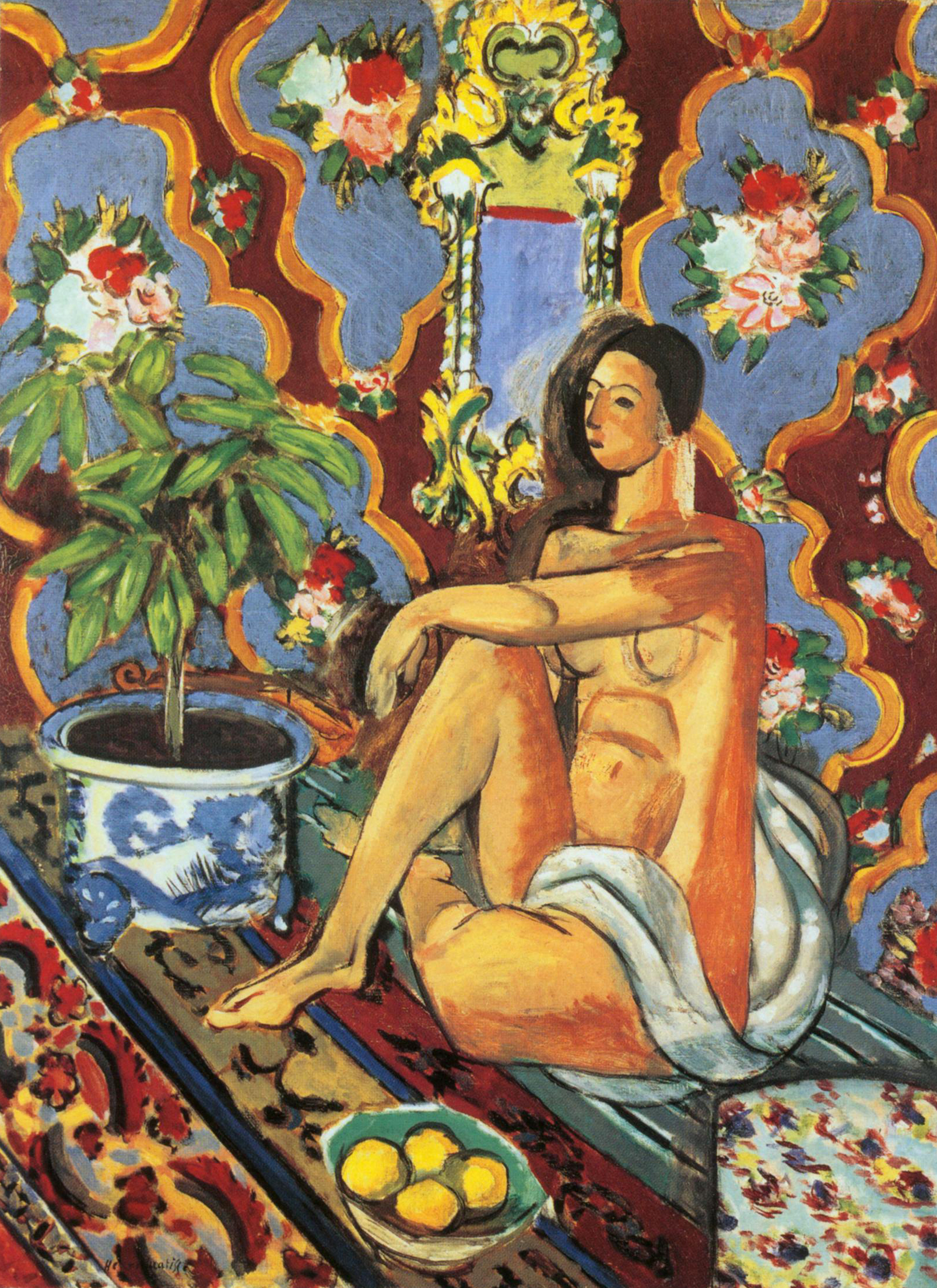亨利·马蒂斯(Henri Matisse,1869年-1954年),法国著名画家,野兽派的创始人和主要代表人物,也是一位雕塑家、版画家。他以使用鲜明、大胆的色彩而著名。他是一个善于吸取各种艺术门类的优点的人,他研究东方地毯和北非景色的配色法,发展成一种对现代设计有巨大影响的风格。 马蒂斯几何学与彩色光辉的表现,集合成为画家的两项优秀的天赋,马蒂斯深深的了解如何使用这些要素,如何把颜色与形状结合一起而使整幅画面如此生动,马蒂斯所有的作品都是如此完美的契合。