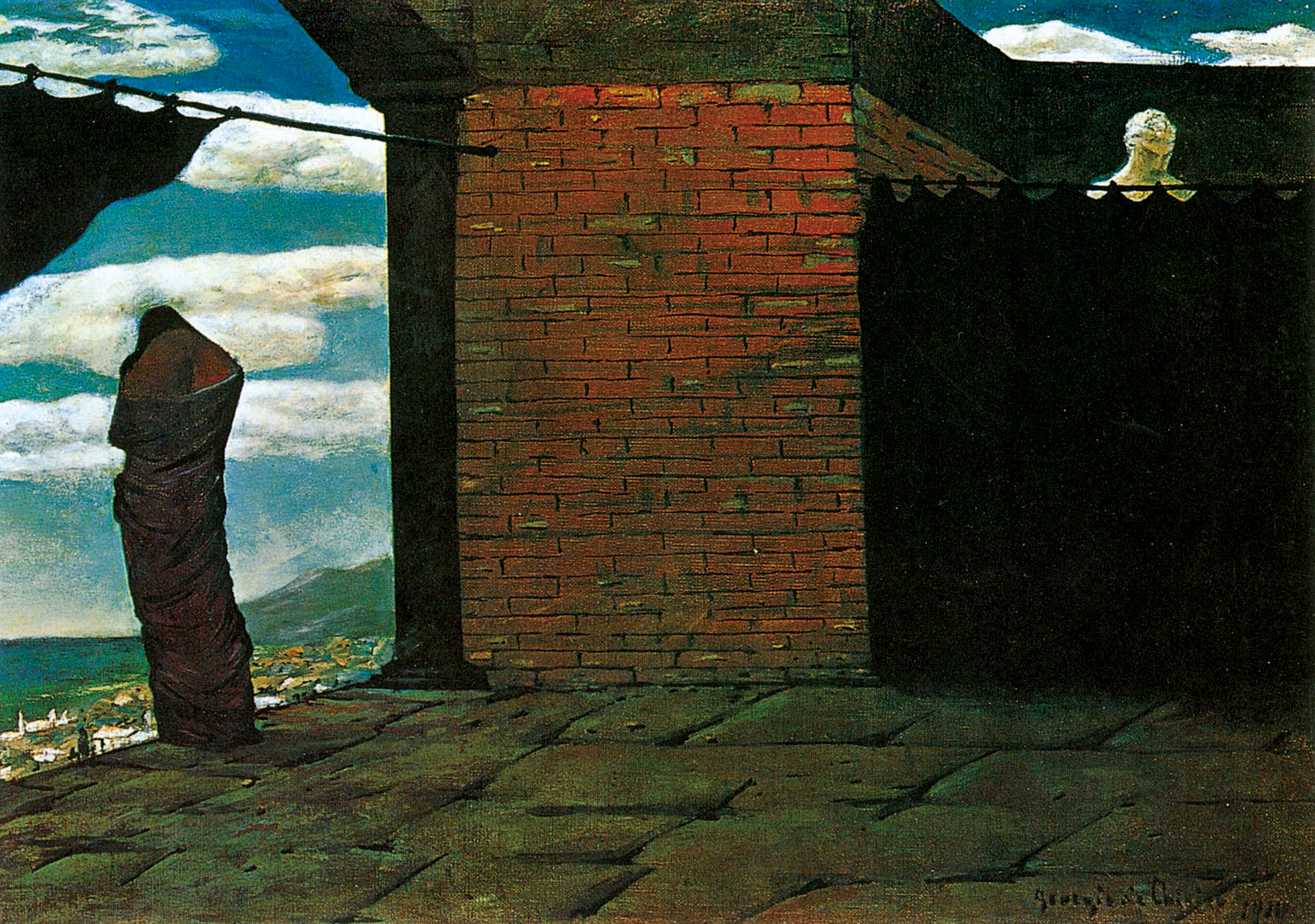 契里柯(Giorgio de Chirico,1888年-1978年),希腊裔意大利人,形而上学画派创始人之一。 他出生于希腊东部的沃洛斯(Volos)。最初在雅典工艺学院和德国慕尼黑美术学院学习。在德国时,受到象征主义和尼采的唯心主义影响,这些哲学思想为他日后创立形而上学画派打下了基础。1917年二战中,他因精神疾病在医院结识了未来派画家卡罗尔·卡拉(Carlo Carra),结为挚友,并在后来共同发起成立形而上画派。