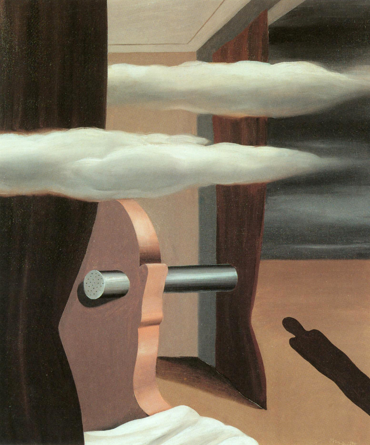 勒内·马格里特(Rene Magritte,1898-1967年)出生于比利时的莱西纳。早年入布鲁塞尔美术学院学习,24岁时见到基里科的作品而走上超现实主义道路。他在巴黎生活了五年,当大部分超现实主义画家运用自动性、搞偏执狂式活动和探求梦幻时,马格里特对自己身边的世界和自己的物品发生兴趣。他要通过现实主义的,然而又是充满诗意的表现,使我们看到它们的存在。他的画面是智慧和感受融为一体的新发现。在他全部的绘画中,他采用很多正统的超现实主义的方法塑造形象,精练而富有哲学意味,动荡而不令人惊异。