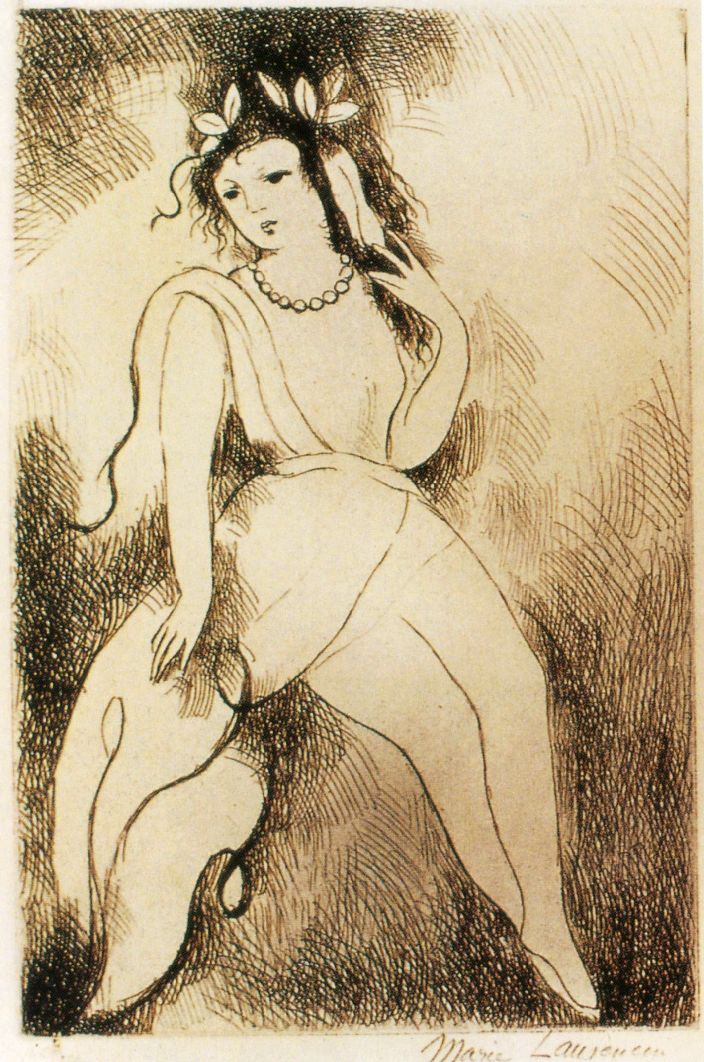 玛丽·罗兰珊(Marie Laurencin,1883-1956年)出生于巴黎。她笔下的巴黎女性,都有风雅的情韵。她一生试过用立体派的线条来表现巴黎的女性。最终,她选择了淡雅而稍透忧思饱和又透明的色彩,来表现二十世纪上叶巴黎女性柔婉雅的体态和那种不言而喻的风雅。