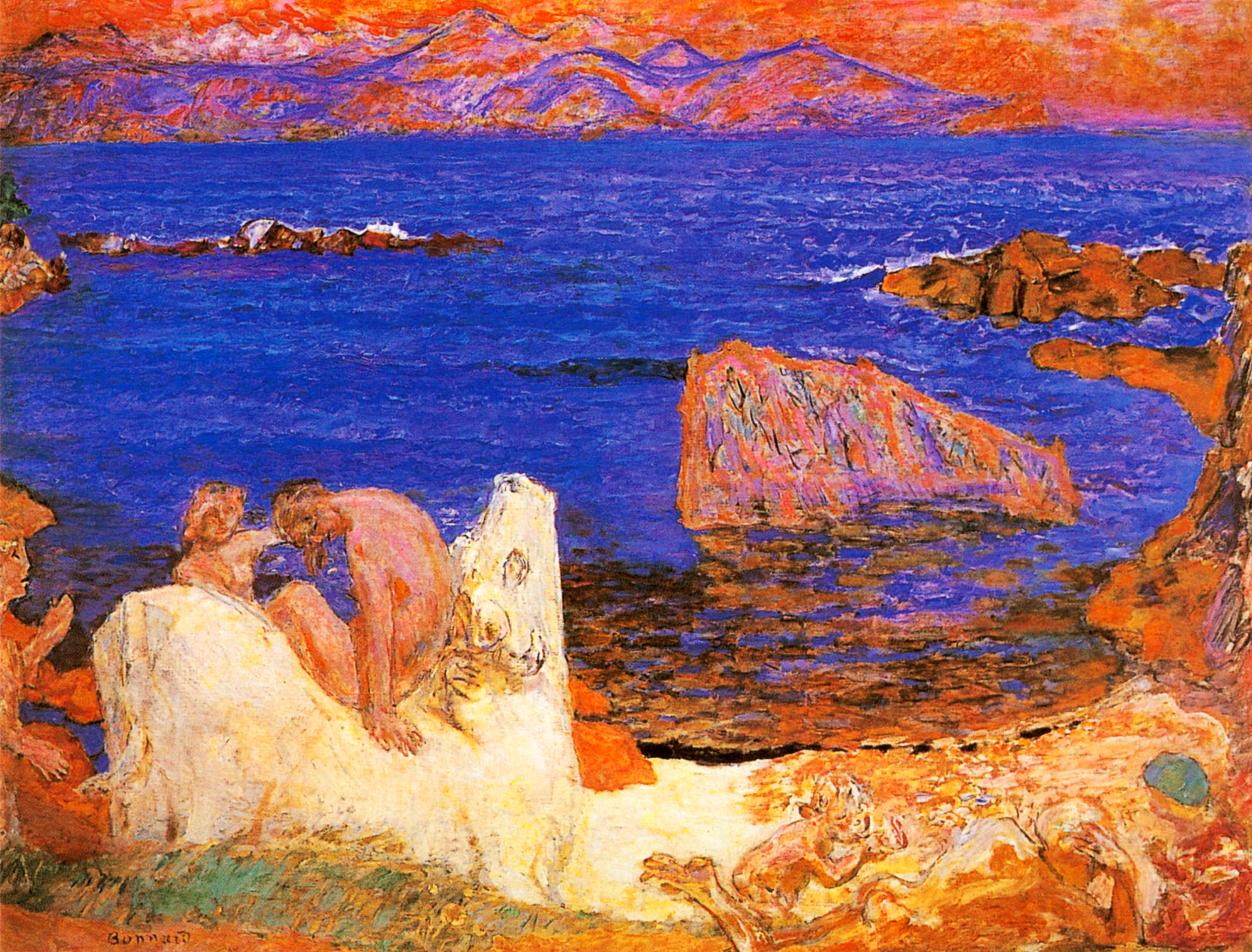 皮尔·勃纳尔(Pierre Bonnard,1867年~1947年),法国19世纪末20世纪初纳比派的重要成员,是一个非常特别的善用色彩的法国画家,在其创作中坚持一种印象派的风格。他打破规则创造了绘画的新方法,常常使用色彩和光的效果表达内心的记忆和渴望。 纳尔喜欢用橙黄翠绿表现风景在逆光中或烈日下呈现出的迷人的魅力,他将看到的世界常常和幻想的世界混合在一起,再从抽象中引导出自我理想的世界。勃纳尔的一生都在色彩、幻觉、象征的世界里生活。色彩在勃纳尔的画布上流淌,从未干过。