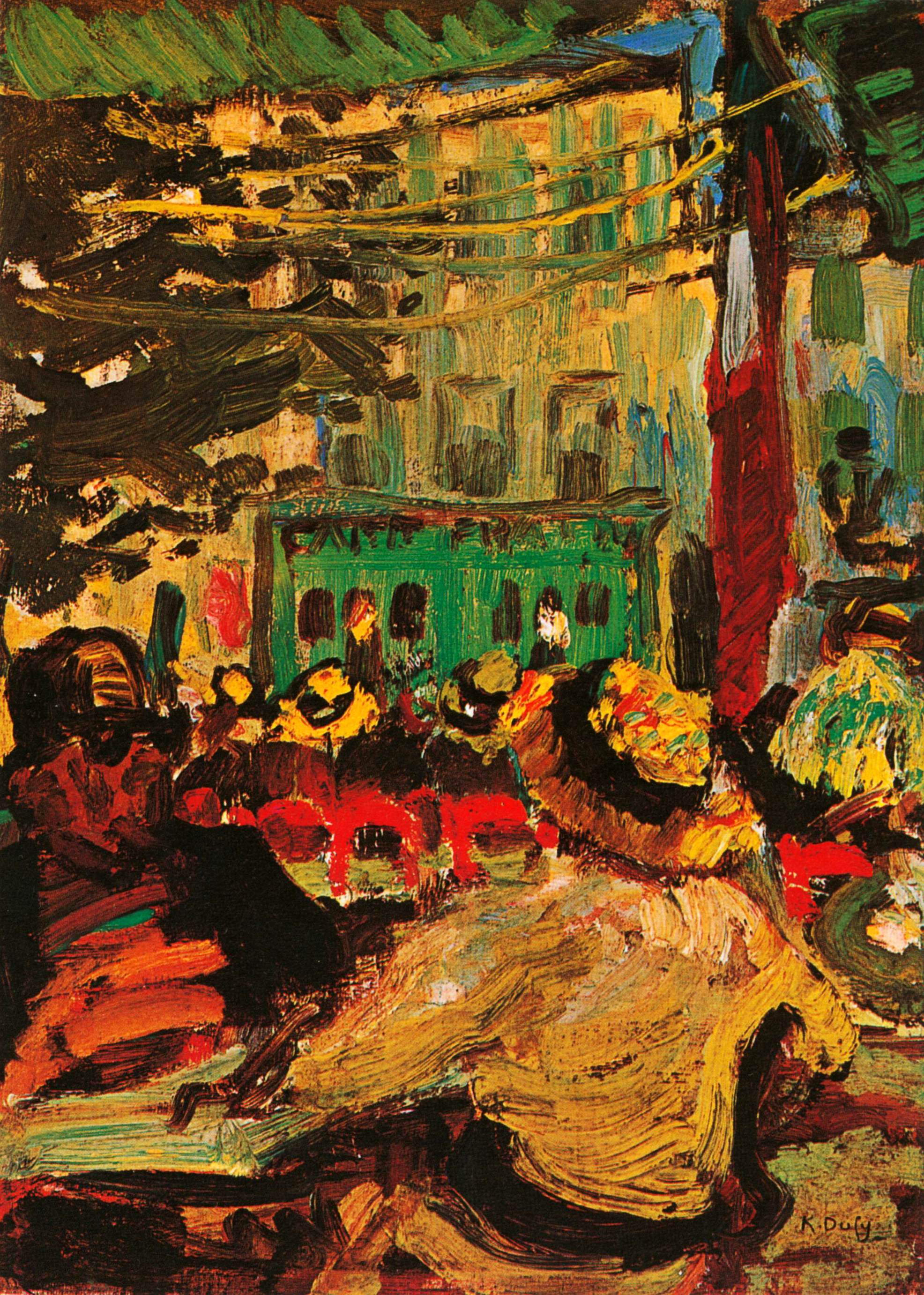 劳尔·杜菲(Raoul Dufy 1877~1953年),生于法国北部港都勒阿弗尔。是20世纪初叶现代绘画史开端的野兽主义成员之一,是一位多元化创作的艺术家。除绘画之外,他的艺术领域扩展到挂毯、壁画、布料图案设计及陶瓷创作,活泼的曲线运用,成为崭新流行设计的先驱。杜菲从印象派入手,后来又尝试立体派的绘画,最后加入野兽派青年画家行列,与马蒂斯、甫拉曼克、佛利埃斯等共同活跃在当时画坛。