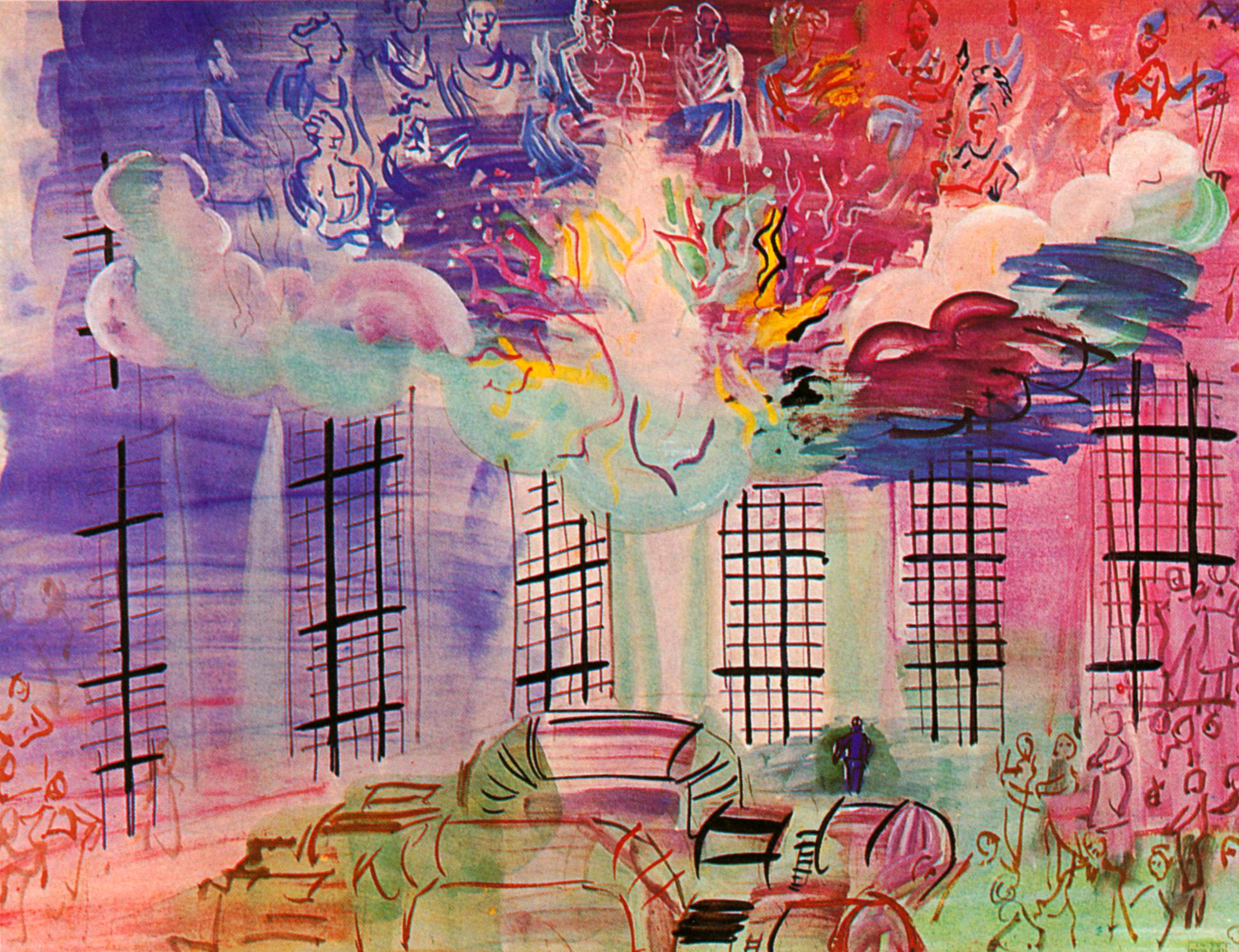 劳尔·杜菲(Raoul Dufy 1877~1953年),生于法国北部港都勒阿弗尔。是20世纪初叶现代绘画史开端的野兽主义成员之一,是一位多元化创作的艺术家。除绘画之外,他的艺术领域扩展到挂毯、壁画、布料图案设计及陶瓷创作,活泼的曲线运用,成为崭新流行设计的先驱。杜菲从印象派入手,后来又尝试立体派的绘画,最后加入野兽派青年画家行列,与马蒂斯、甫拉曼克、佛利埃斯等共同活跃在当时画坛。