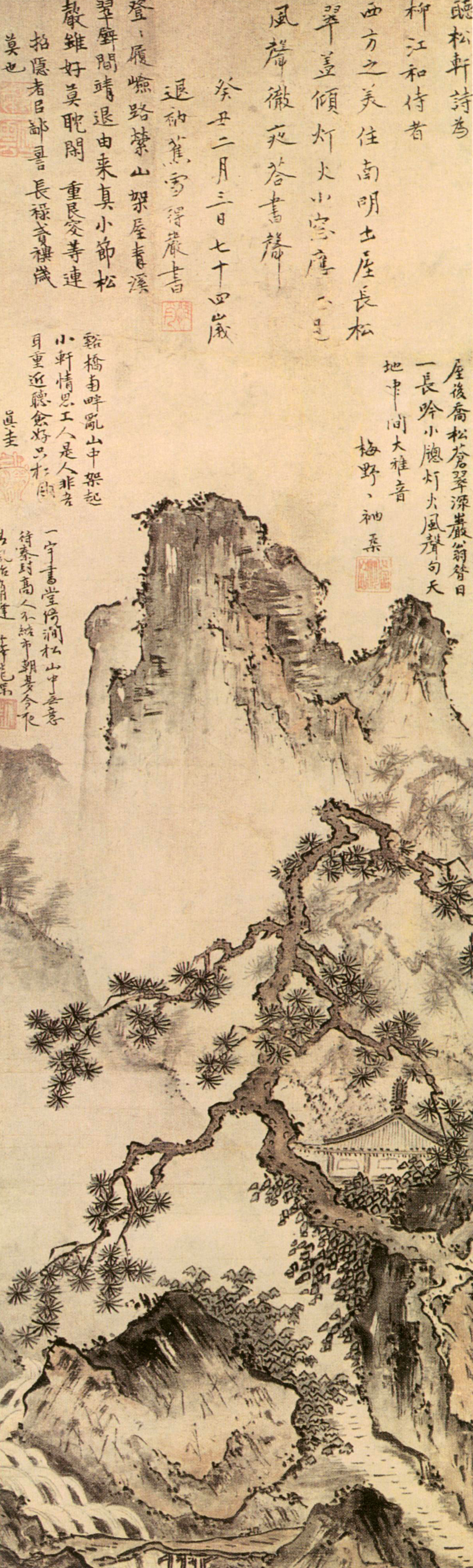 这幅绘画用流畅挺劲的线条进行勾勒和物象造型,线条极为概括洗练,刚健古拙,沉凝有力,造型生动,具有相当的艺术表现力。全幅线条虽然颇为简括,但变化非常丰富,疏密对比、粗细对比恰当、自然。如凤、龙用线对比、人物用线对比,都很有特色。凤鸟之用线,明显比龙纹丰富、变化得多,线条主要突出风的动感造型和优美姿势的表达,在疏密对比上也加以留意,详略得当。如翅膀用线,细密完整,不惜精心刻造,具有装饰性的成分:凤鸟的爪、尾羽轮廓线则粗犷有力,大胆概括,见其尾羽的劲挺和脚爪角质层的瘦硬和坚实。龙之用线,则较为纤细、简略一些,突出其较为安静的静势,与凤鸟的剧烈升腾所形成的飞动之势对比,更显凤鸟的勃勃生机。