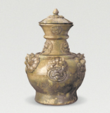 青釉贴花带盖尊