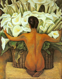 捧水芋百合花的裸女