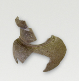 该器时代属二里头文化早期。系酒器长流平底盉的残片。薄胎,胎骨为青灰色,质地致密,硬度较大,吸水性弱;器表 施青绿色釉。器身饰弦纹和云雷印纹。经中子活化分析显示胎土成分与白陶相近。是研究由陶向瓷转化过程的重要标本。