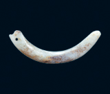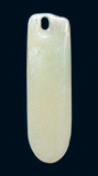 灰白色。器体呈弯条形, 顶部微凹, 较薄, 末端渐细, 呈圆弧状, 靠近顶端中部钻一圆形小孔。