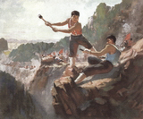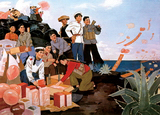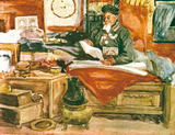 这里画着的是一位优秀的藏族人民老教师,正在细心准备功课,以便把他的学问更好的教给他的学生们。