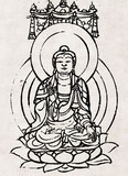 图上部菩萨头饰圆光,结跏趺坐于莲花上,下部为经文