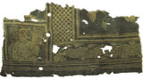 此残片左下角方框内为一袒胸,持角杯,头后饰圆光的佛像。右侧栏框内为龙及鸟纹边饰,其馀大部分已缺失。现藏新疆维吾尔自治区博物馆。
