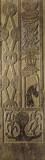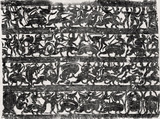 画面分为四层,内容相近,刻人物和奇禽异兽嬉戏
