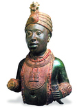 此青铜造像是尼日利亚艺术盛期的代表作之一。其面容特征、王冠及上身装饰都塑造得极为精致,特别是面部轮廓线刻画生动清晰,具有独特的艺术表现力。面部及前胸雕有刺花纵纹,这与当地风俗有关。雕像发掘于公元20世纪二三十年代,体现出伊费能工巧匠的高超技艺。