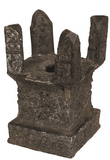 胎系山麻干粉拌油脂等物塑雕而成,外涂厚漆层,呈黑褐色。分为基座、塔身及顶三部分。塔内中空,顶部中央刻十二瓣莲纹。馀地刻有佛传和本生故事、佛像、券门、金丝鸟等