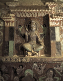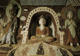 龛内塑趺坐禅定佛,龛外两侧各塑一身立姿供养菩萨