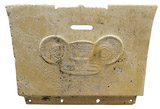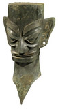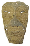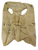 短发隆起,弯眉,窄直鼻。嘴及双眼雕空。两耳垂有可繫物的穿孔。应是祭祀时的假面