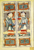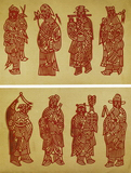 八仙分为四组,立于中堂,系以木版刻印,后以手工敷色,色彩艳丽,形象生动。