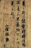《姨母帖》,行楷,原载于唐人摹《万岁通天帖》。硬黄纸本。藏辽宁博物馆。《万岁通天帖》又名《王氏一门书翰》、《王氏宝章集》,是王羲之后裔王方庆家物,内收王氏家族二十八人法书。王方庆于唐武则天万岁通天二年(696)上进武则天,武命人临摹后将原本又赐还王方庆。现存《万岁通天帖》为摹本,包括王羲之、王荟、王徽之、王献之、王慈、王志等七人共十帖。此帖钩填技术极其精妙,可谓“下真迹一等。”董其昌曾称此帖“奕奕生动,并其用墨之意一一备具,王氏家风漏泄殆尽”。此帖曾摹刻于《戏鱼堂》、《真赏斋》等丛贴。现存王羲之的字面貌不尽相同,大凡有流便和古质两种,《姨母帖》属于后者.杨守敏说:“观此一帖,右军亦以古拙胜,知不专尚姿致。”此类作品可能是他早期所写,其结字和用笔都还存有较浓厚的隶书笔意,和现在出土的晋代简牍帛书有相近之处。如“一”“十”“痛”等字中的横画,隶书的笔意都很明显;“痛”“日”“何”等字的转折处都较生拗峭拔,并残存横式。这些都是隶书笔势孑遗。另外笔画质朴凝重,出笔入笔比较自然,不像唐以后那样强调一笔三折。这些都使此幅作品具有一种古朴高华的艺术魅力。还有一幅《行穰帖》和此帖比较接近。